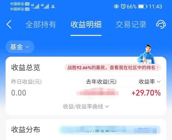 基金账户表现亮眼:收益率 29.70%,超越92.66%基民