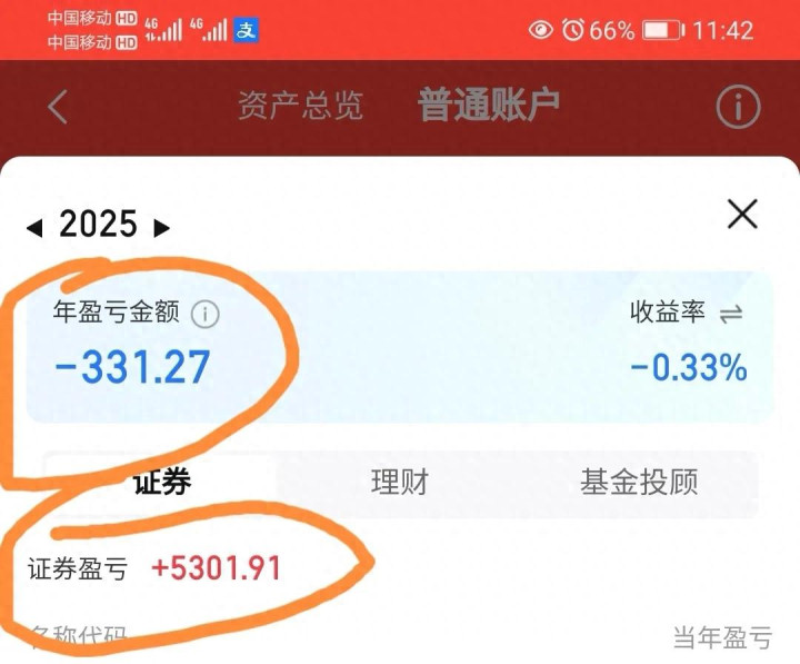 证券账户全年收益率 -0.33%(亏损331元),跑输存款利率与大市